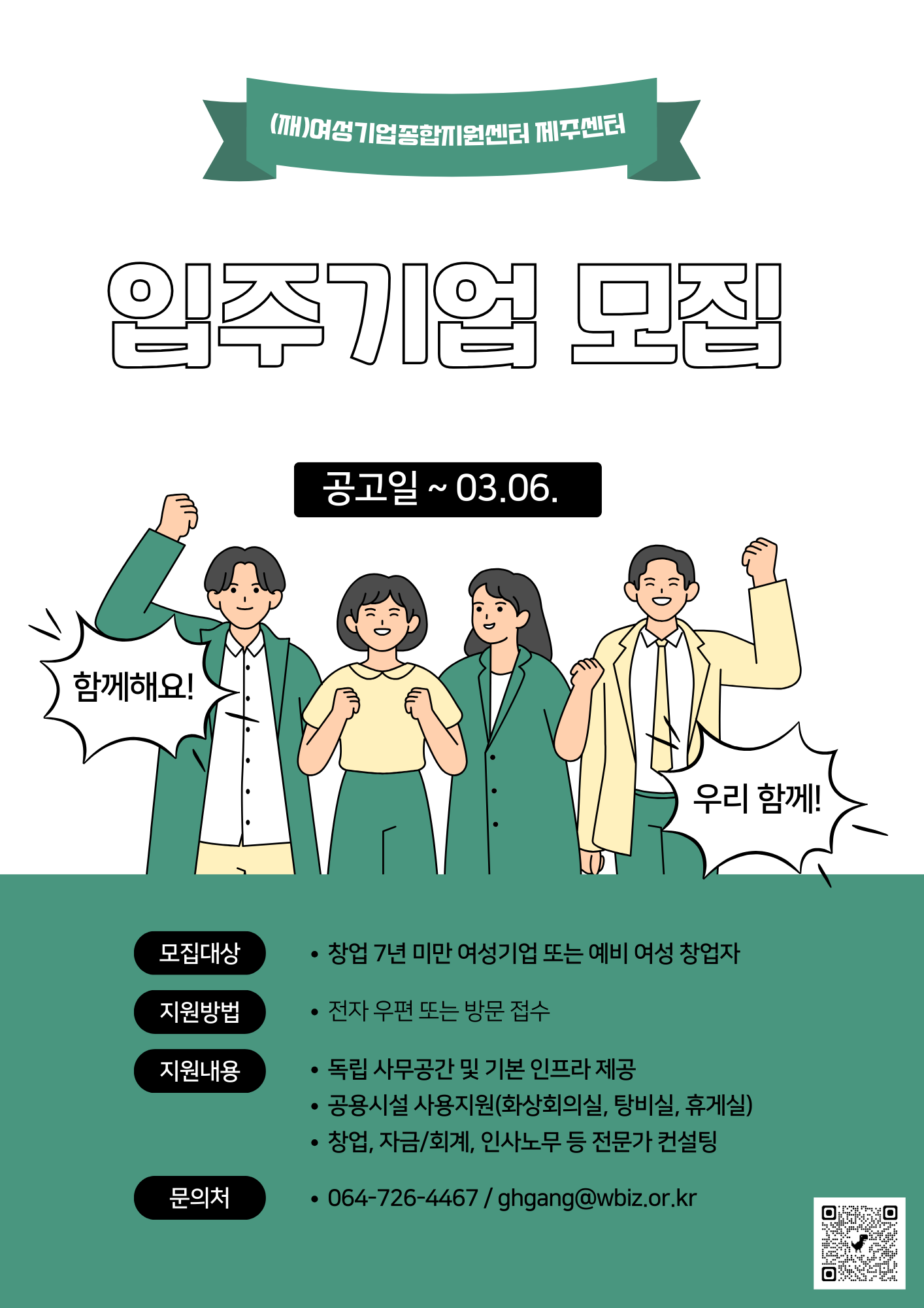 2026년 제주센터 제1차 입주기업 모집 2차 연장 공고(~3.6.)
